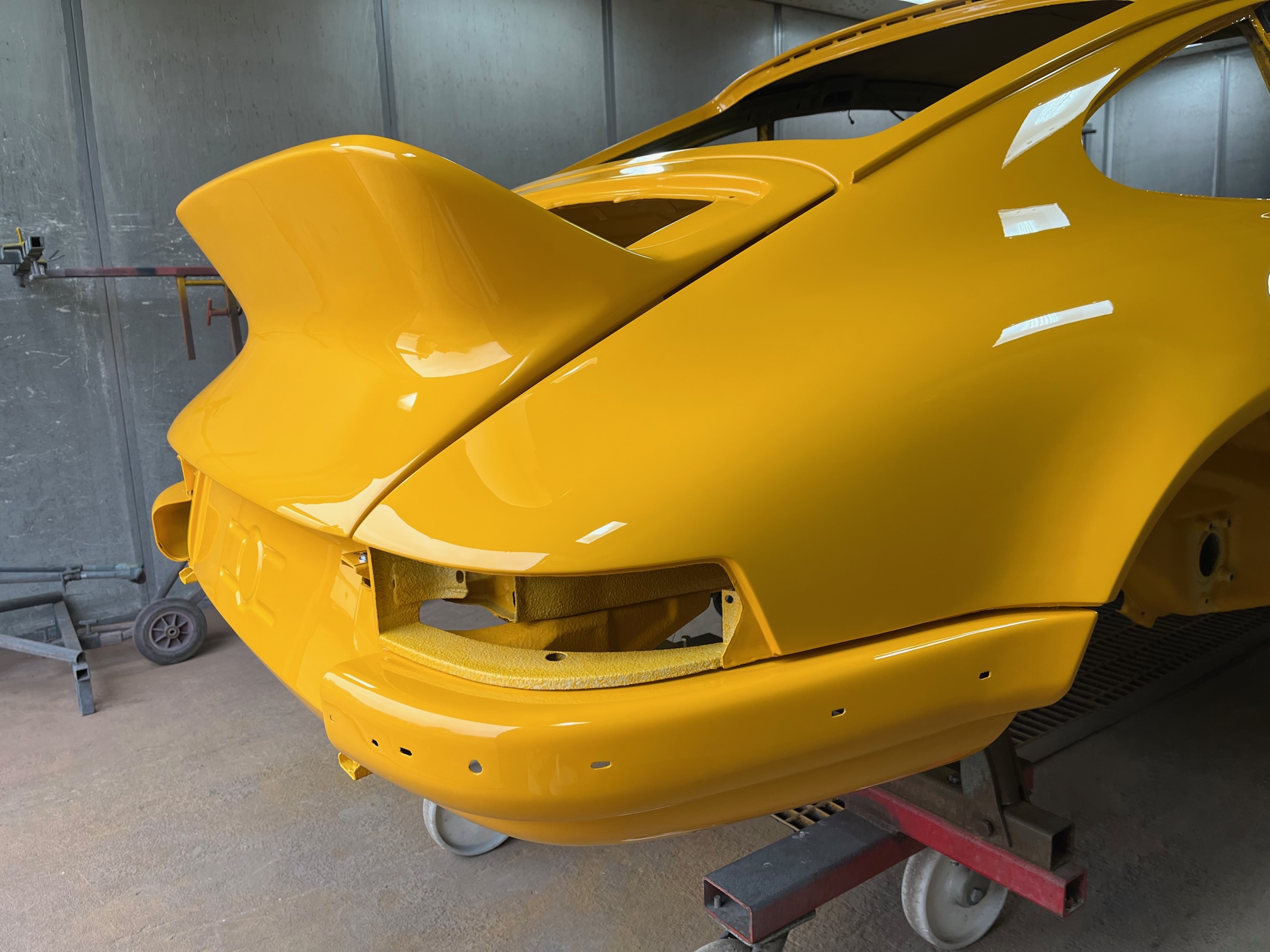 The Carrera RS M472 we are restoring has retruned from the paintshop and has been placed on one of our build ramps for us to continue the restoartion.