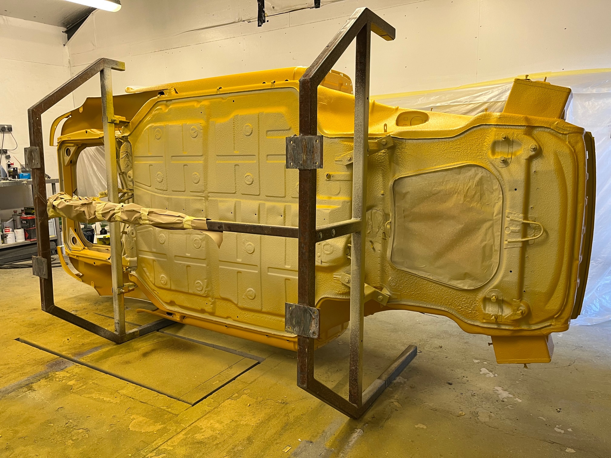 Repainted in it's orignal colour of Signal Yellow and we have also recreated the factory finish of the underseal, primer and overspray. We have also hand brushed the black areas on the door edges and along the sills.