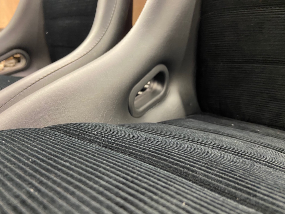 The seats are finsihed in black vinyl with the correct early corduroy inserts.