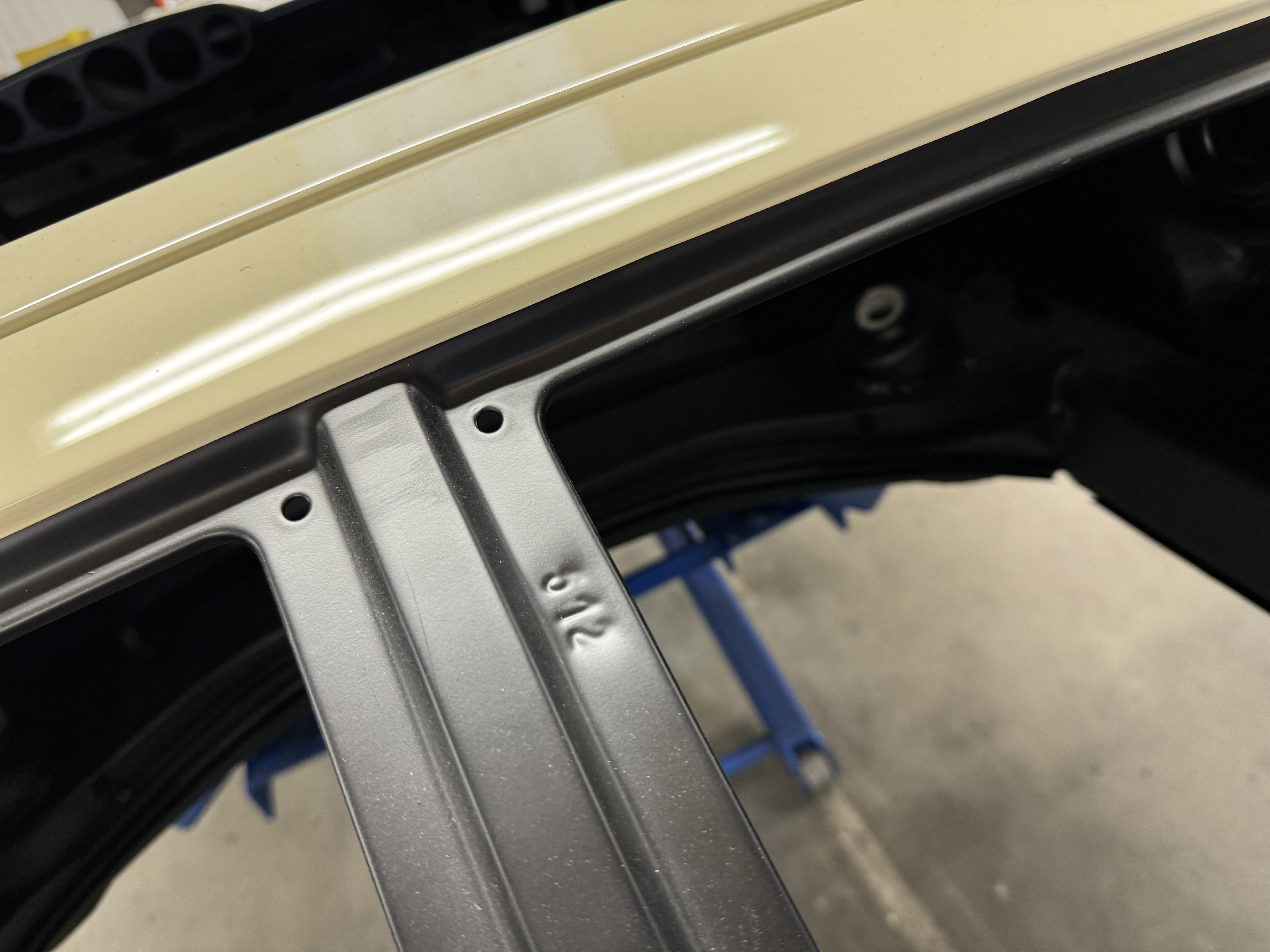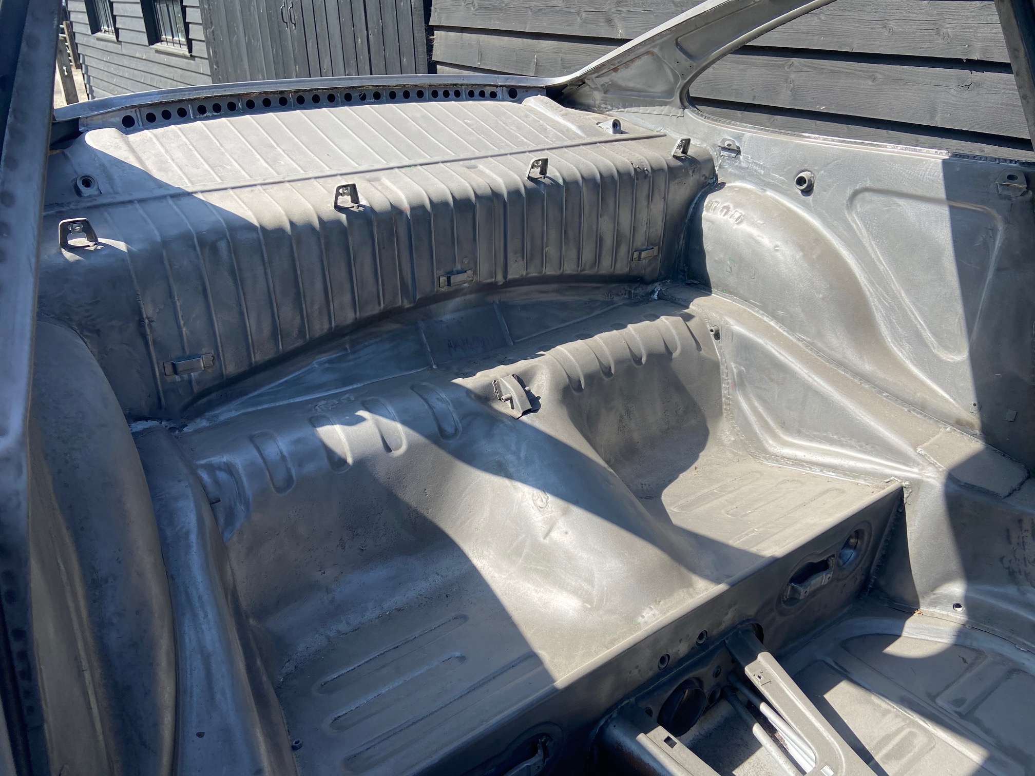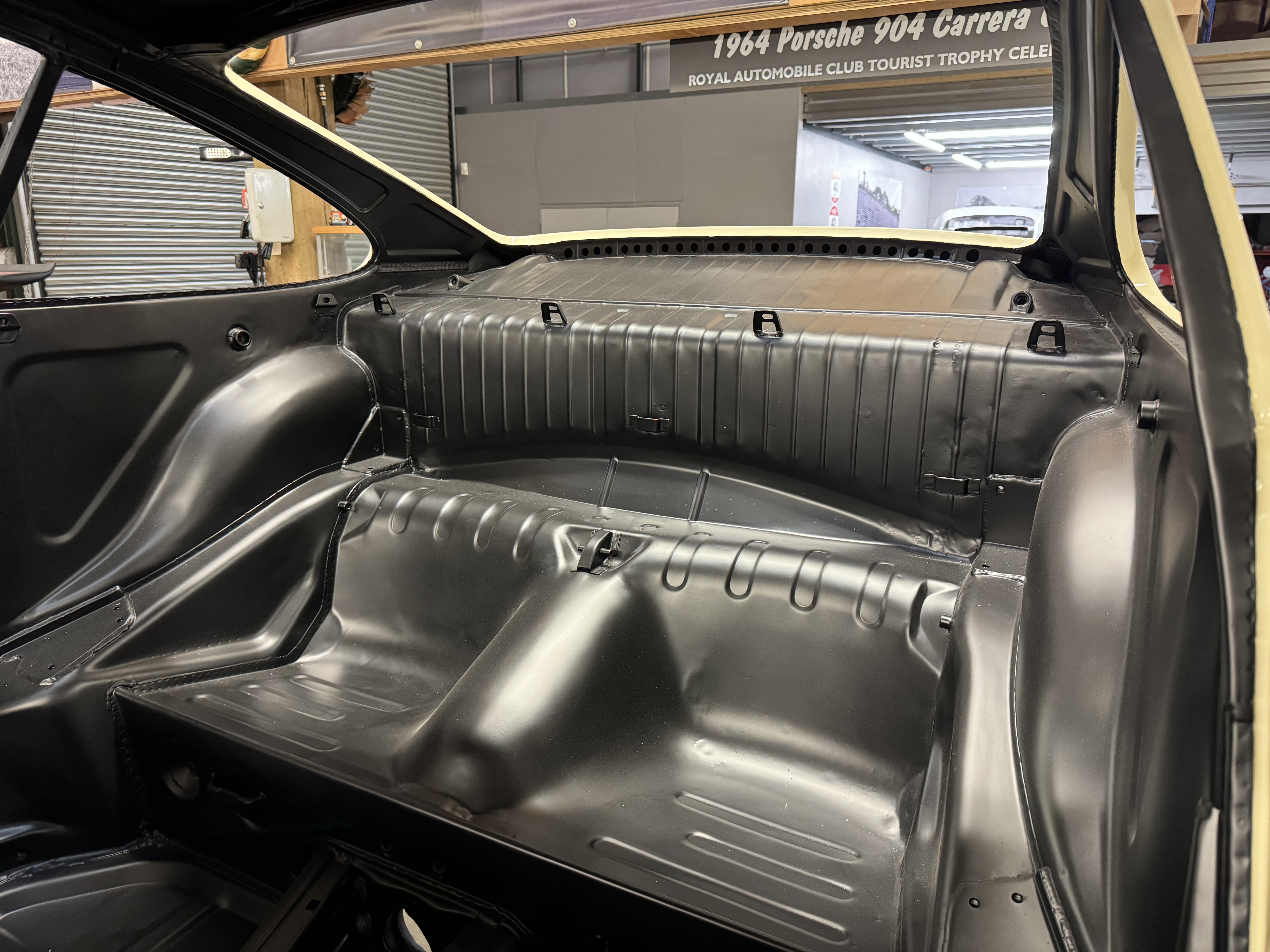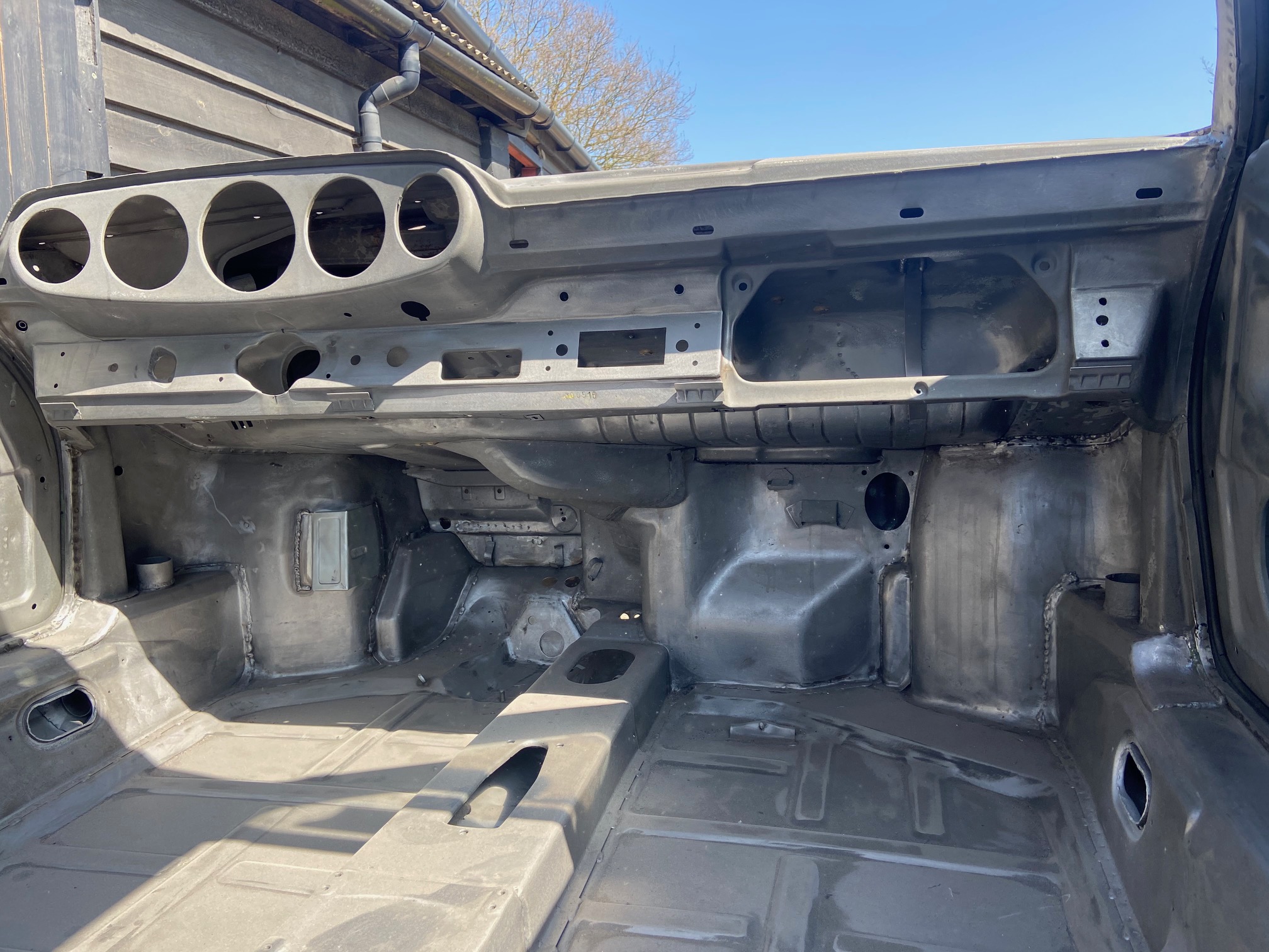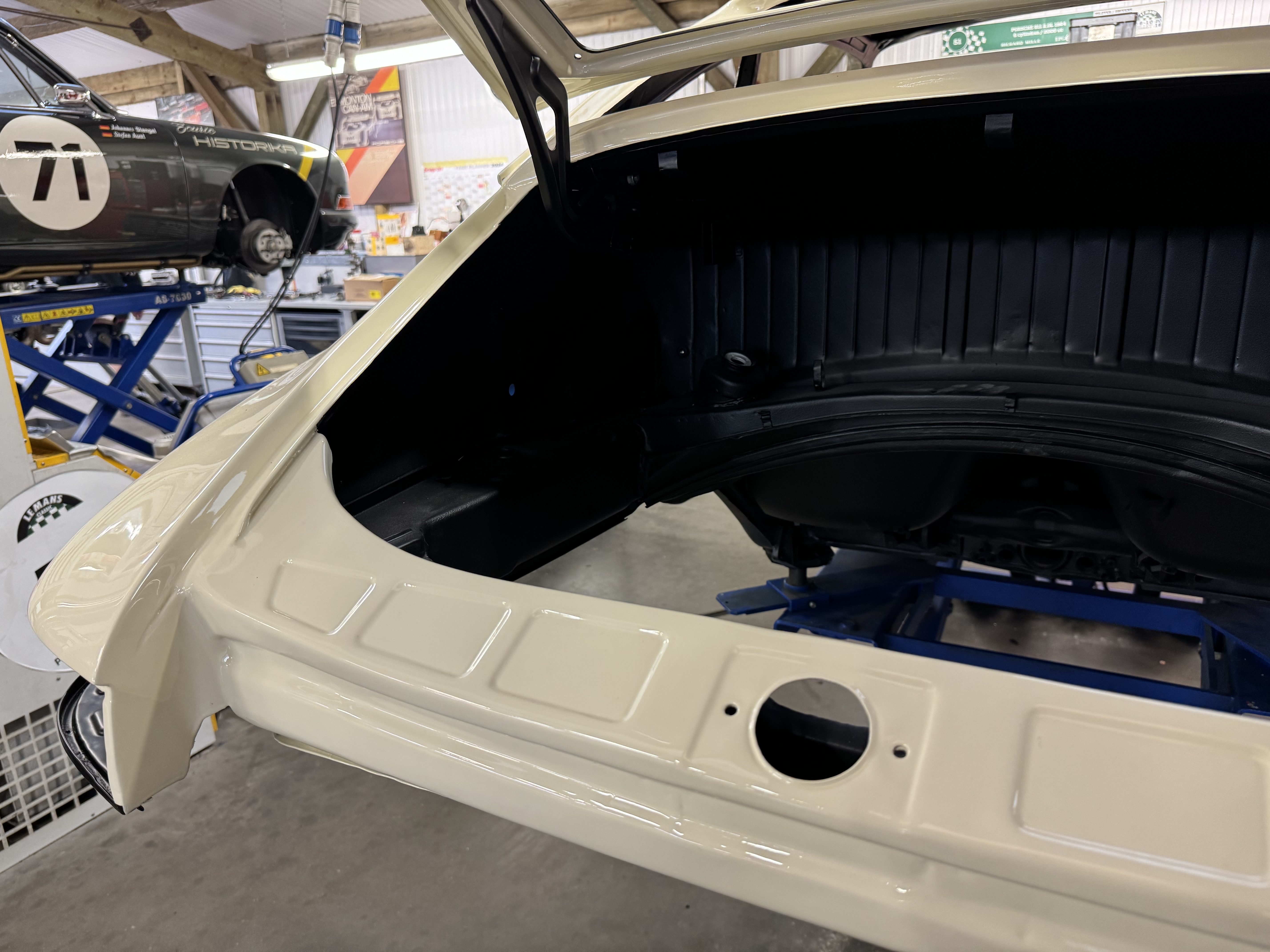 We have completed the metal work restoration to our usual exacting standards with all 65 details in place. We have had a custom built "bolt in" FIA roll cage manufactured and shell is now painted in it's original colour of light ivory. Next we will commence the build to one of our full FIA appendix K and front running 2.0L cup race cars.