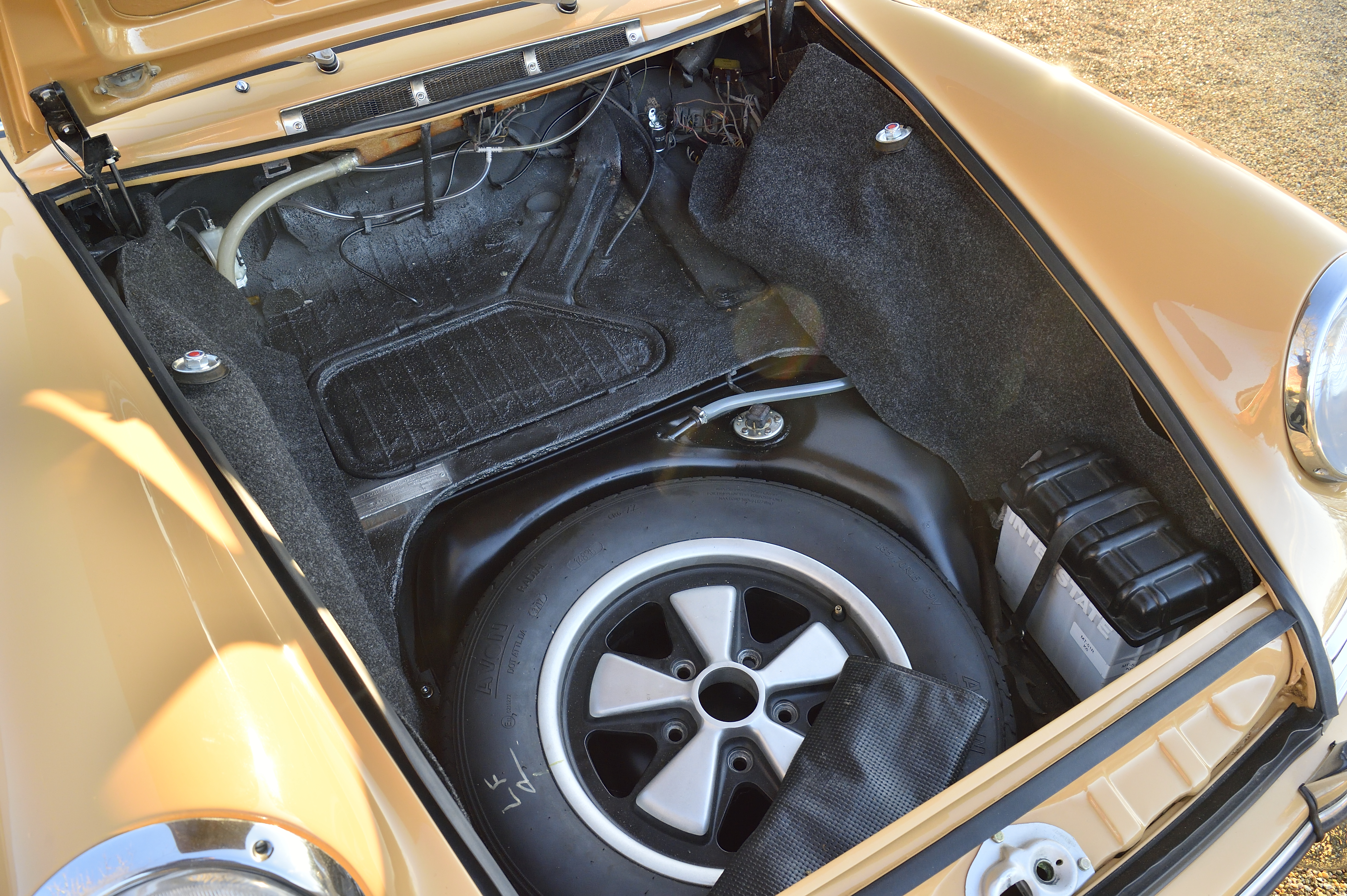 In 2020 the current owner wanted the car to become more purposeful on the road and we commenced on a “Sports Purpose” makeover of 302811. This work included fitting Fuchs type wheels with Avon CRF6ZZ’s, using our 2.0 race car experience to set up the suspension and fit custom set Koni sports dampers, larger Anti Roll Bars, all new bushes, ST style seats and harnesses, a custom sports exhaust and finally rolling road tuning and geometry set up. Now the car drives exactly as a well set up SWB 911 should do and is an absolute joy to drive the car also sounds the part on the custom stainless steel exhaust system.