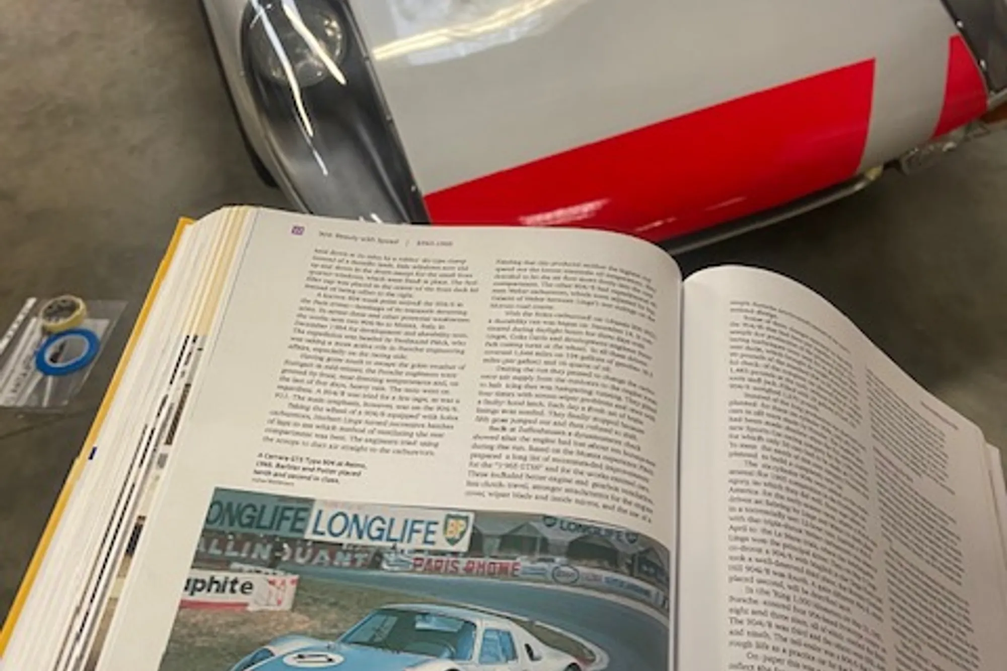 Once finished we had the car returned to it’s 1965 Reims 12hrs livery by hand painting the bonnet and clamshell flashes, tricolore’s and as numbers and roundles.