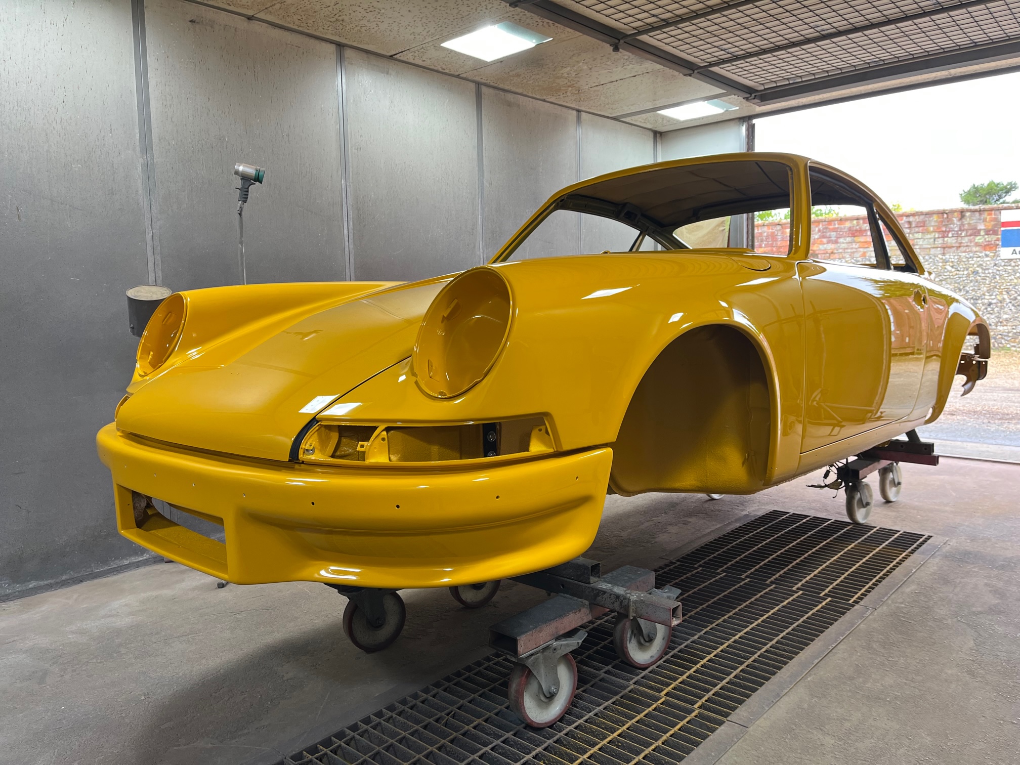 The Carrera RS M472 we are restoring has retruned from the paintshop and has been placed on one of our build ramps for us to continue the restoartion.