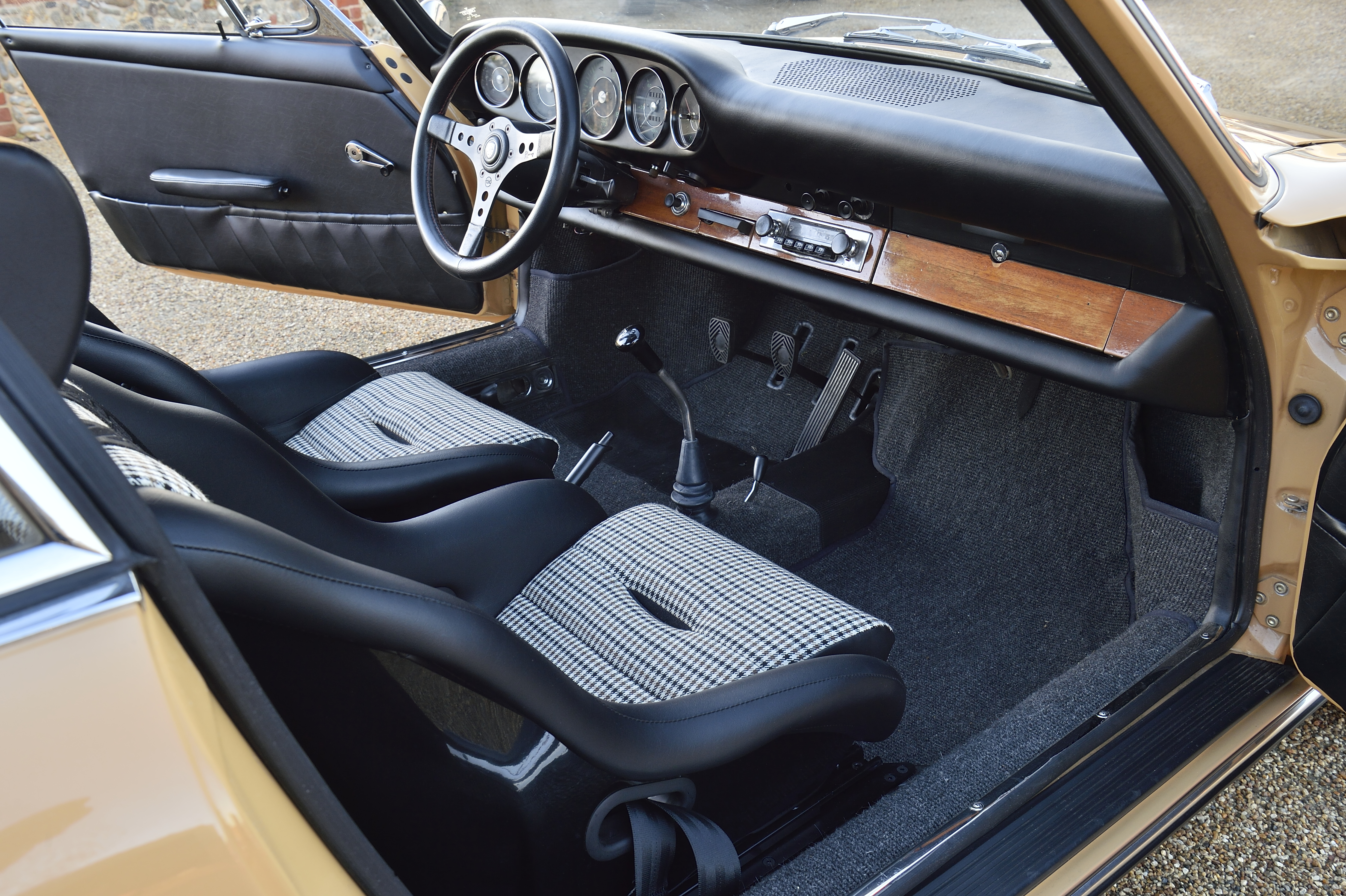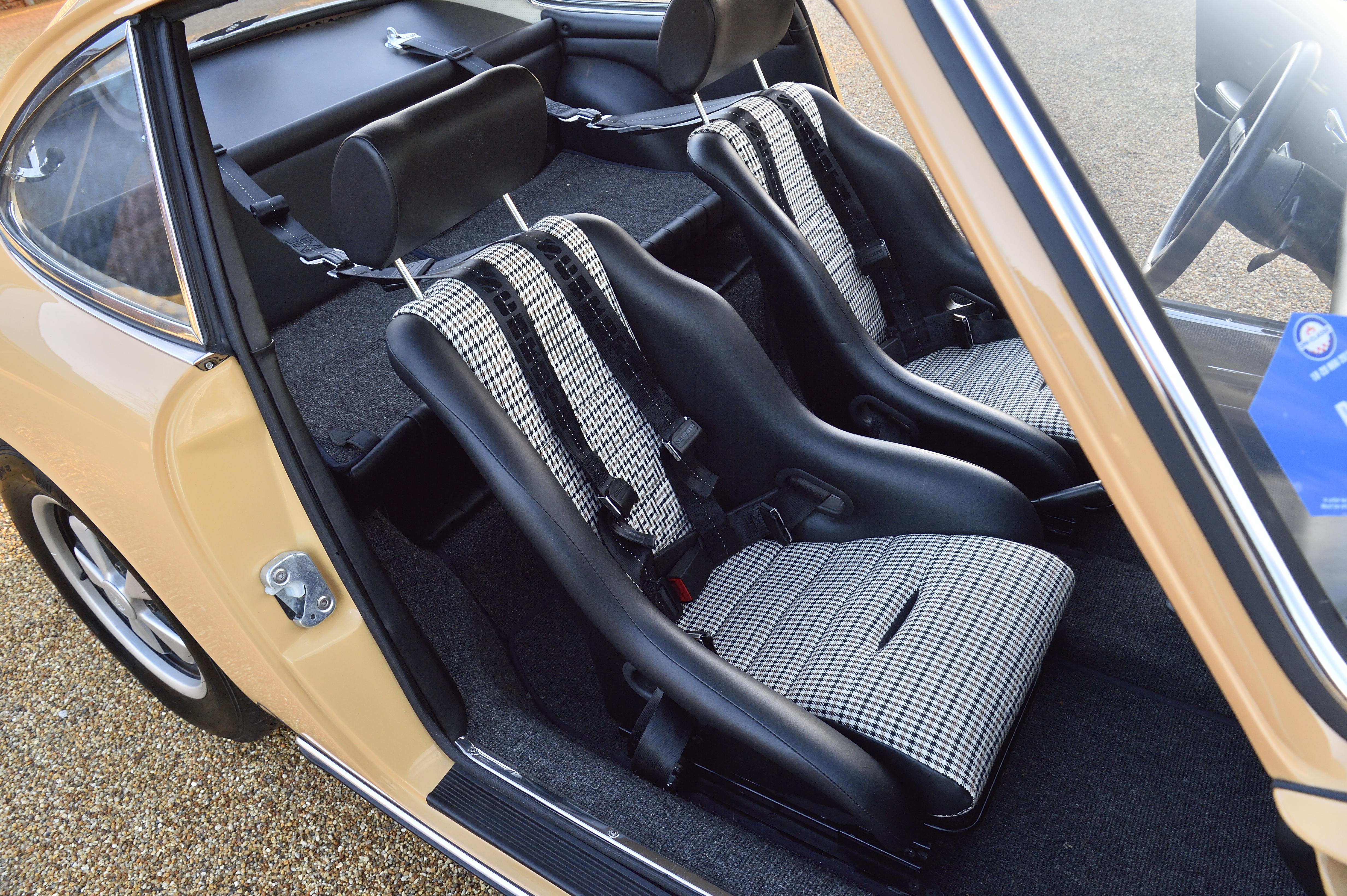 In 2020 the current owner wanted the car to become more purposeful on the road and we commenced on a “Sports Purpose” makeover of 302811. This work included fitting Fuchs type wheels with Avon CRF6ZZ’s, using our 2.0 race car experience to set up the suspension and fit custom set Koni sports dampers, larger Anti Roll Bars, all new bushes, ST style seats and harnesses, a custom sports exhaust and finally rolling road tuning and geometry set up. Now the car drives exactly as a well set up SWB 911 should do and is an absolute joy to drive the car also sounds the part on the custom stainless steel exhaust system.